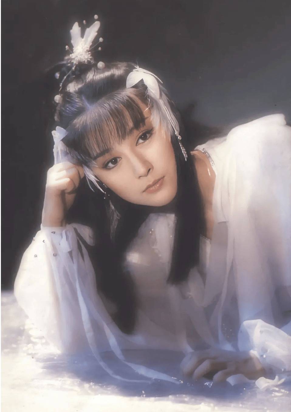 剧组为塑造经典不惜血本:新台币50万元搭建的活死人墓布景,缀满珍珠的雪白戏服,还有让武打场面更飘逸的弹簧垫子——这些在当年堪称“豪华配置”的细节,让潘迎紫的小龙女一出场就自带柔光滤镜。她站在古墓石门后回眸的瞬间,眼波流转间既有不谙世事的纯净,又藏着一丝对杨过的依赖,成为全剧最动人的画面之一。